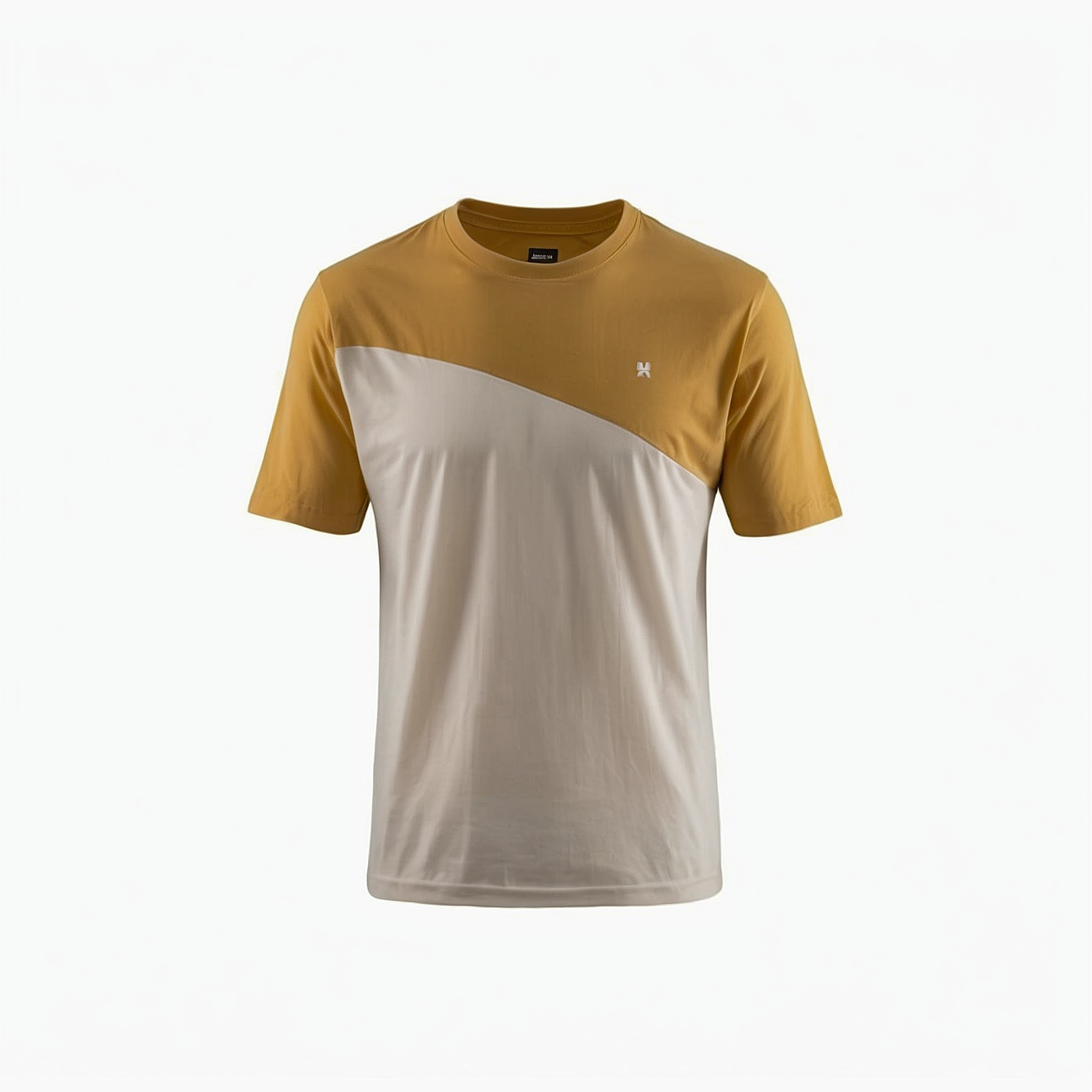 A unique white and brown striped t-shirt made from 100% organic cotton with a bold, casual look.